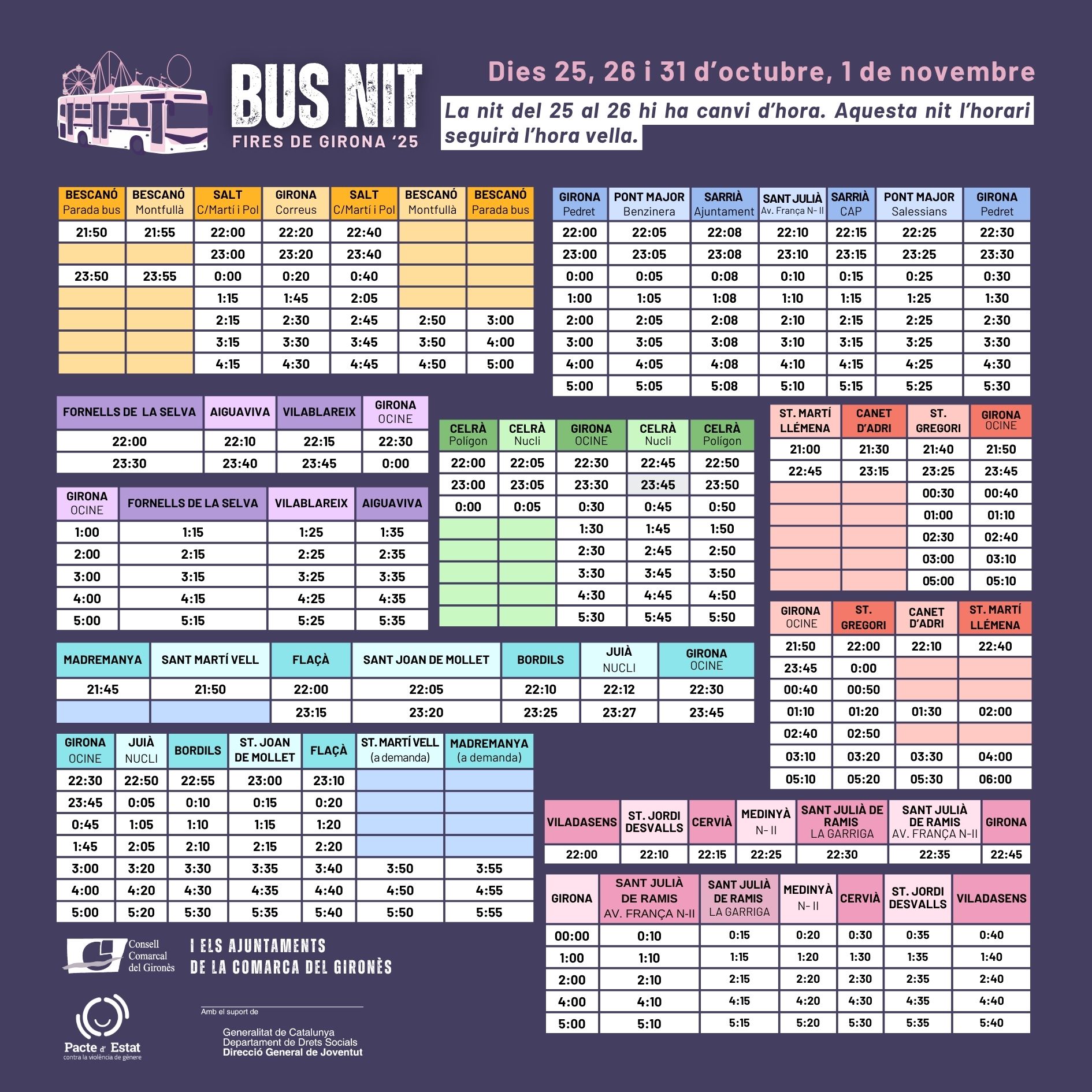 ⌚ Recordeu que la nit del 25 al 26 d’octubre hi ha canvi d’hora. Aquesta nit l’horari serguirà a l’hora vella.