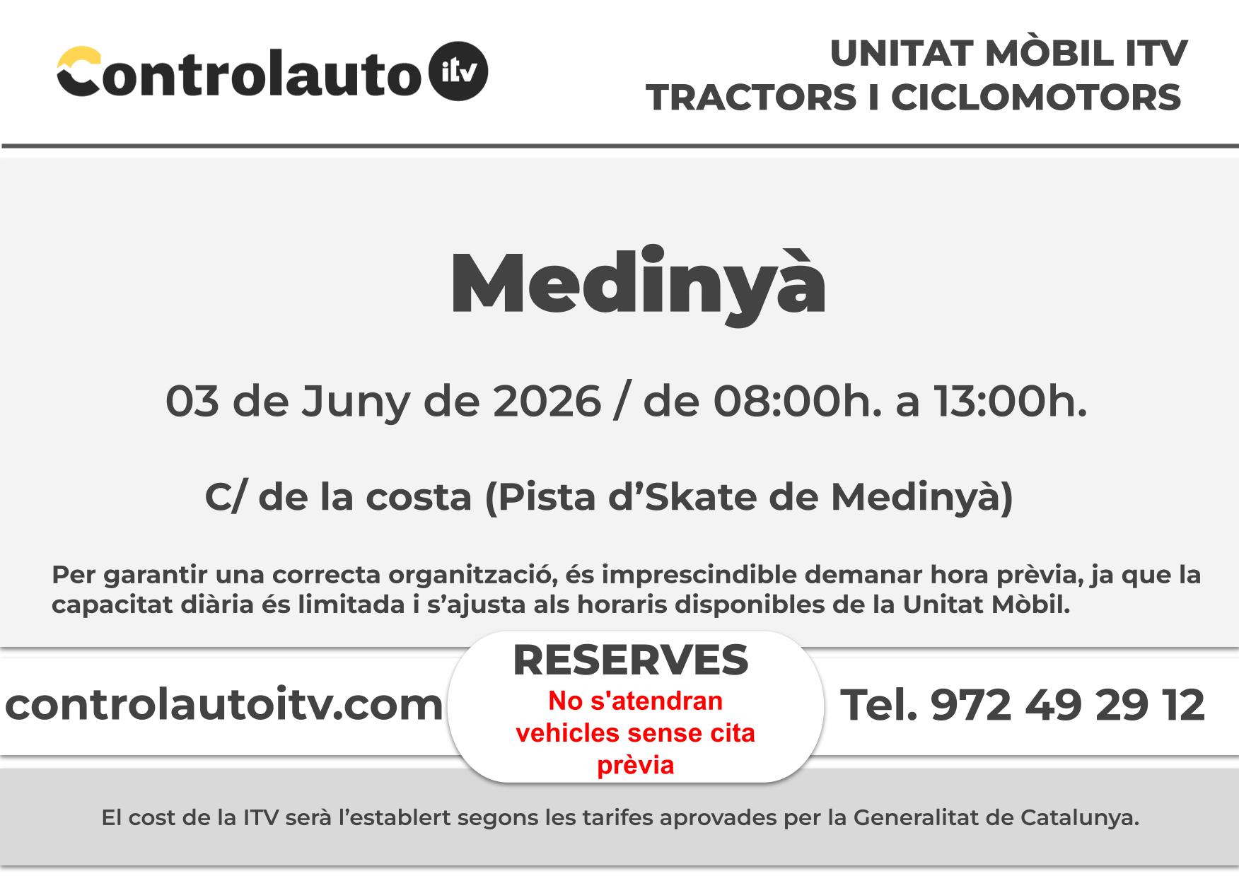 • Unitat Mòbil ITV agrícoles i Ciclomotors Medinyà